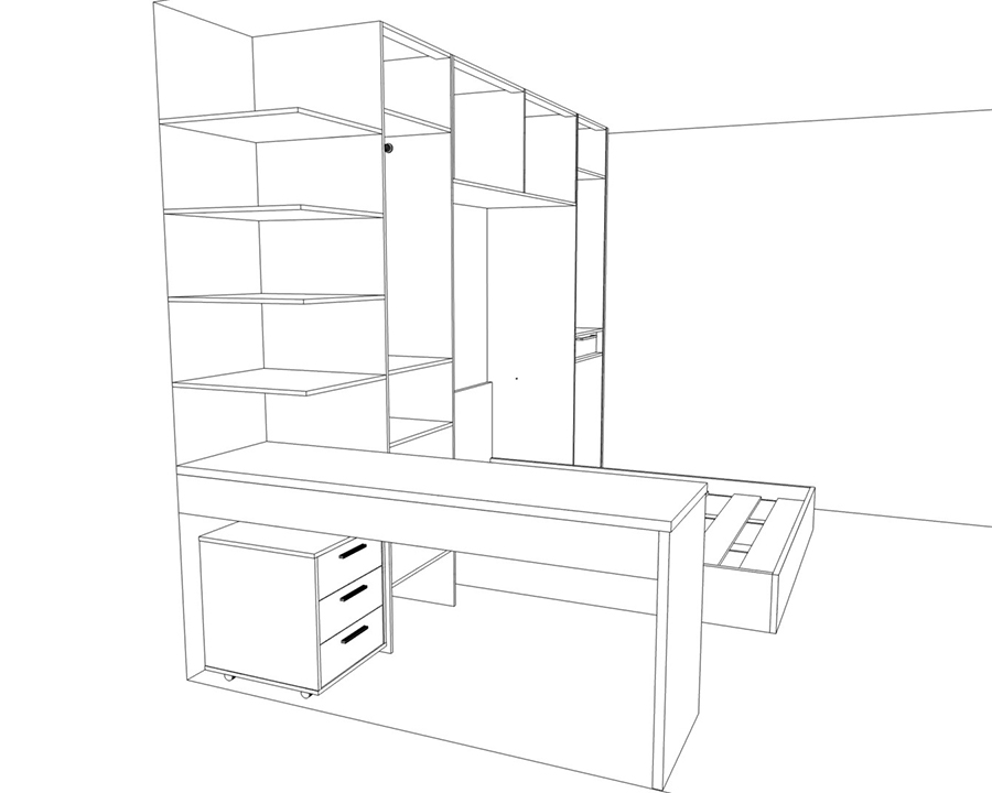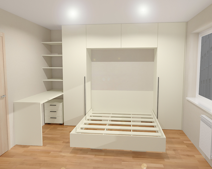 Эту мебель мы сделали в спальню молодой девушке. Ей нужен был стол, для нечастой работы на компьютере и кровать.