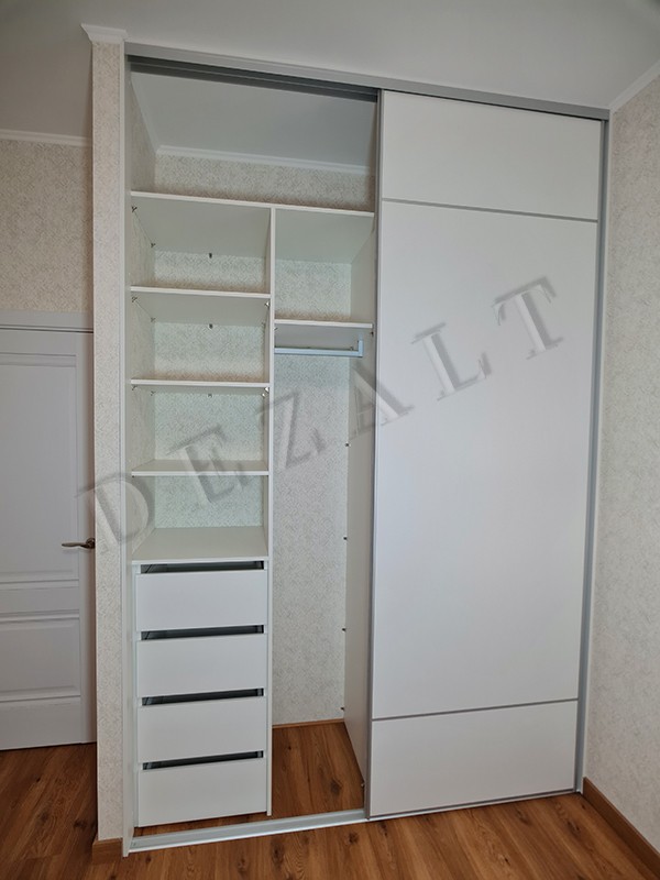 Это второй шкаф-купе для Анны. Первый мы сделали в прихожую с зеркальными дверьми, а этот предназначен в спальню.