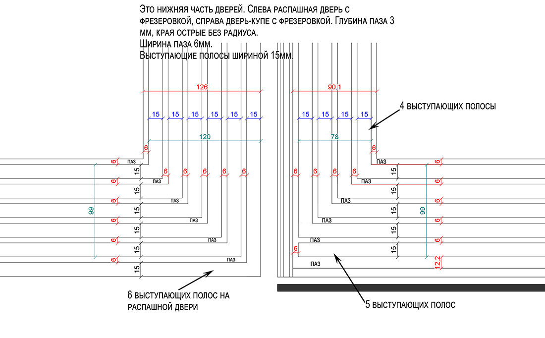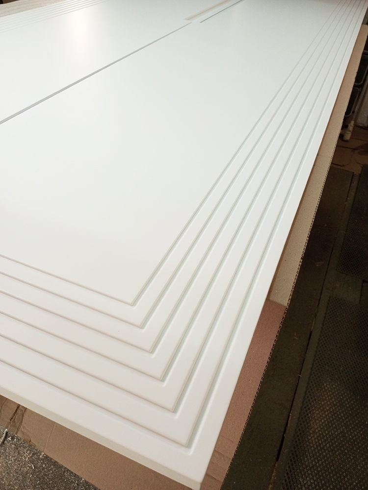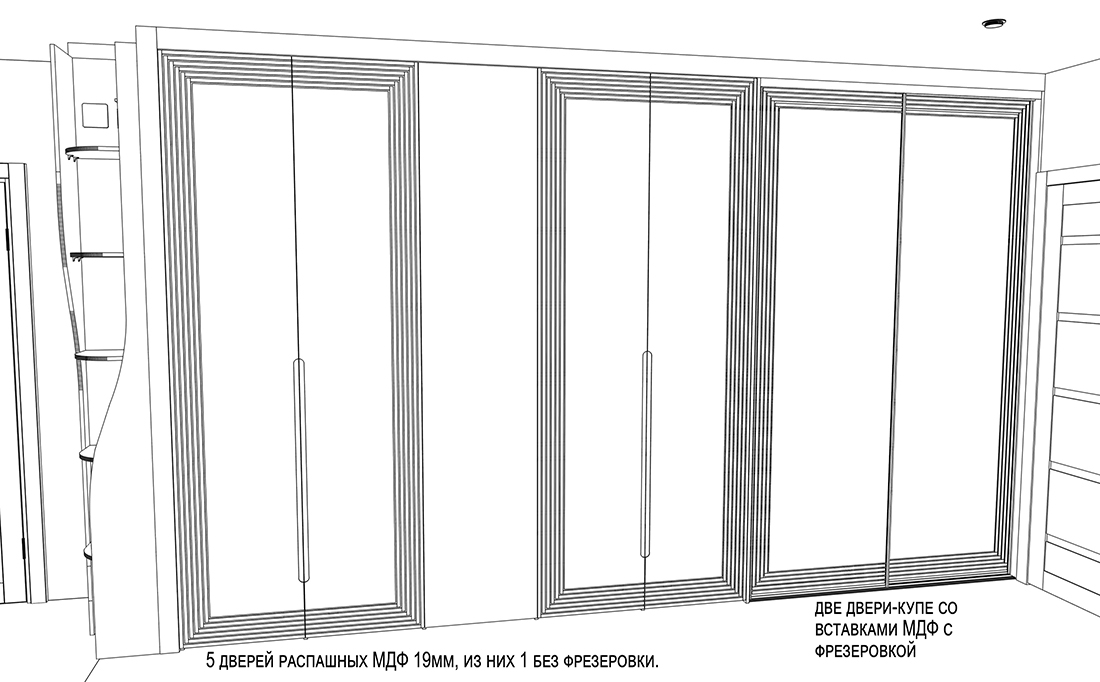 Двери выполнили из МДФ толщиной 19 мм — это позволило сделать фрезеровку глубиной 3 мм.